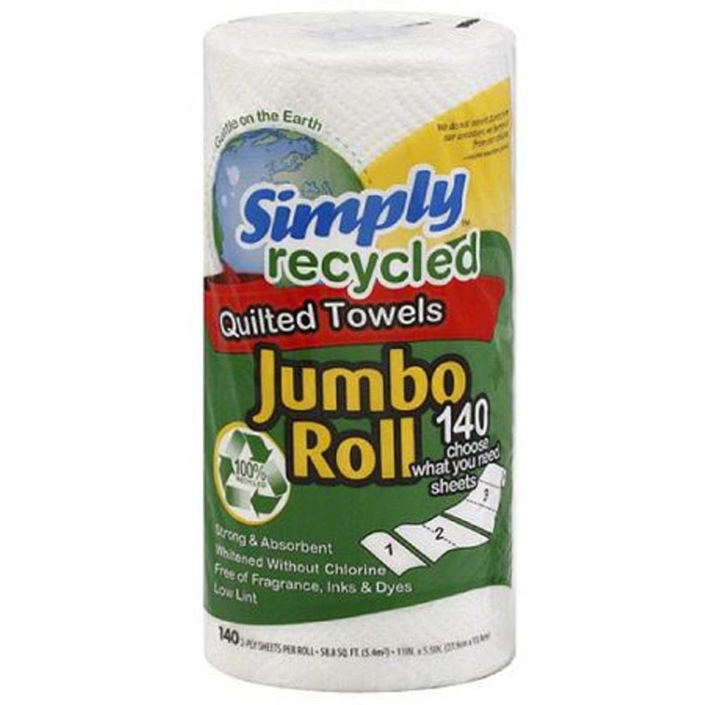 SIMPLY RECYCLED: Jumbo Roll 2 Ply Quilted Paper Towels 140 Sheets, 1 Roll